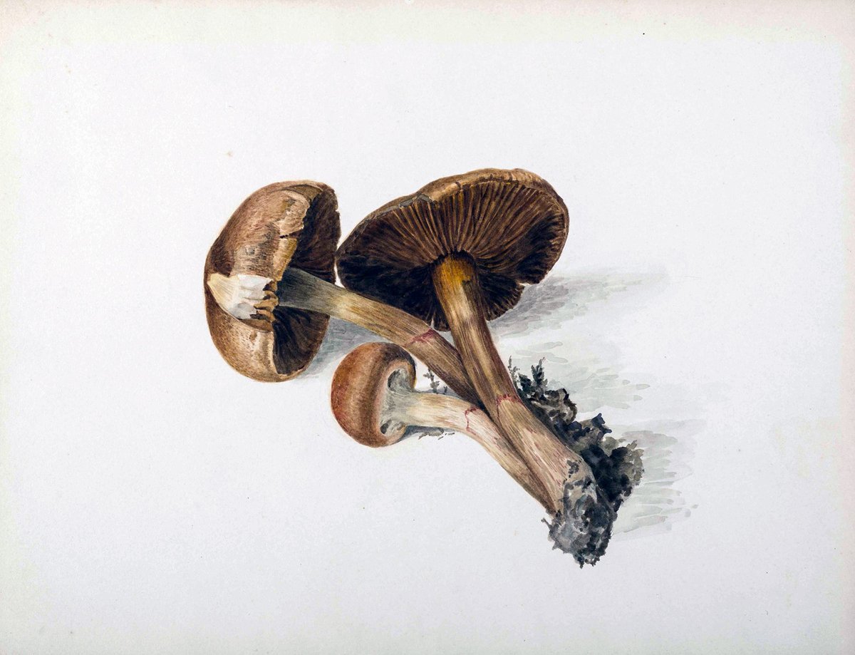 Beatrix Potter's watercolor of brown mushrooms, painted with scientific precision that impressed leading mycologists Beatrix Potter, fungus illustration, public domain -