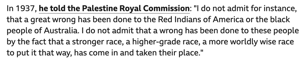24. Churchill's testimony to the Palestine Royal Commission, 1937, on indigenous peoples quoted text