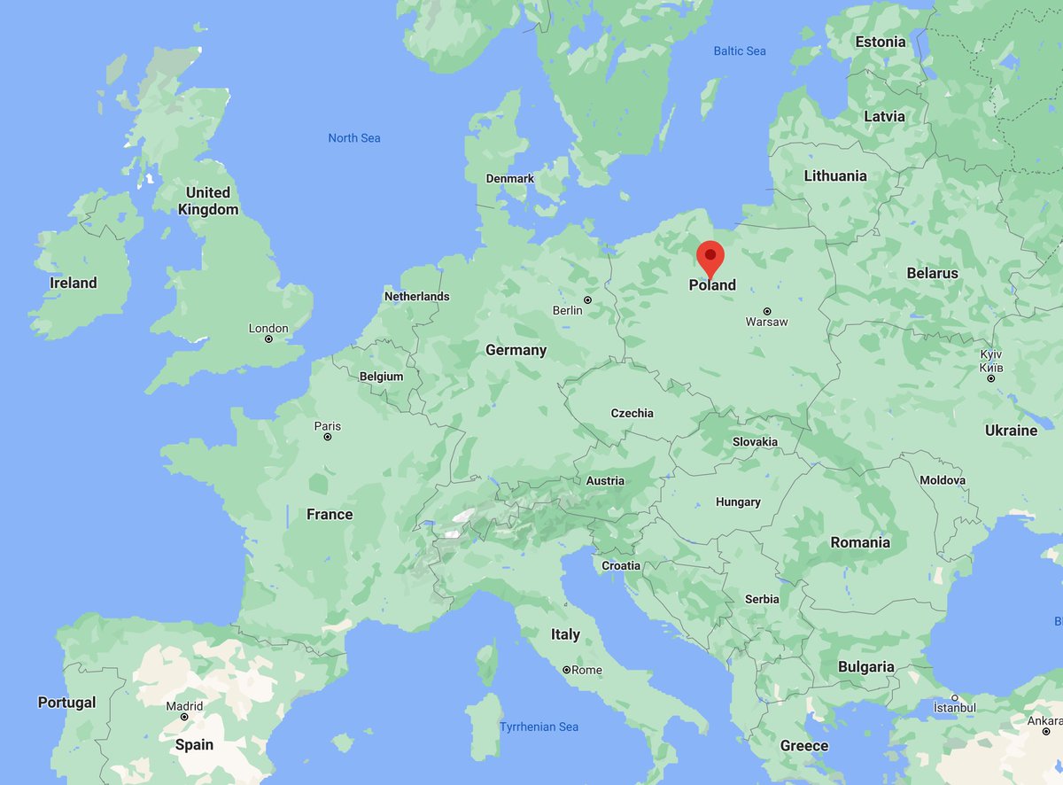 Map showing Torun, Poland, birthplace of Copernicus Google Maps data © Google -