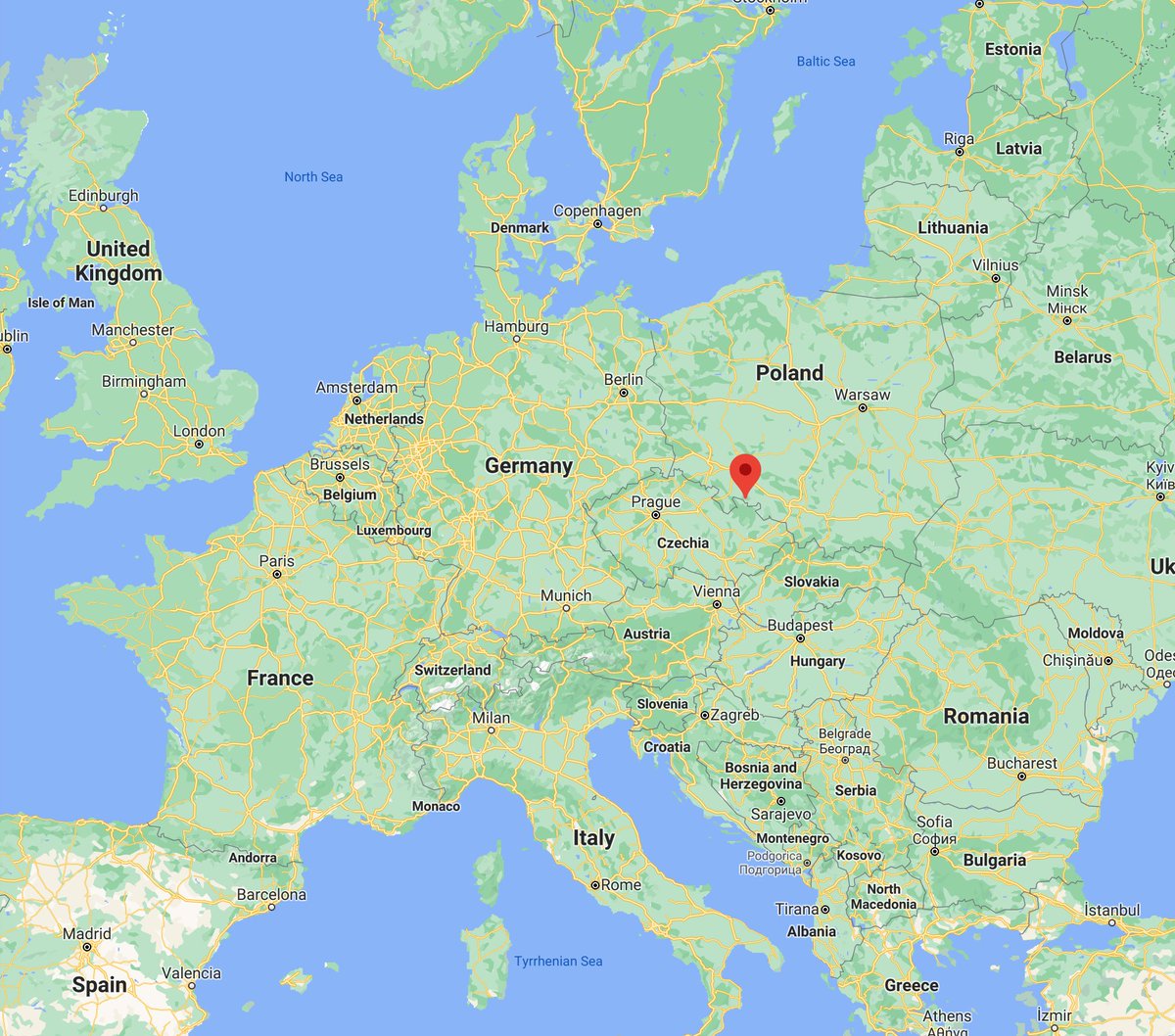 Map showing Koperniki, Poland, origin of the Copernicus family name Google Maps data © Google -